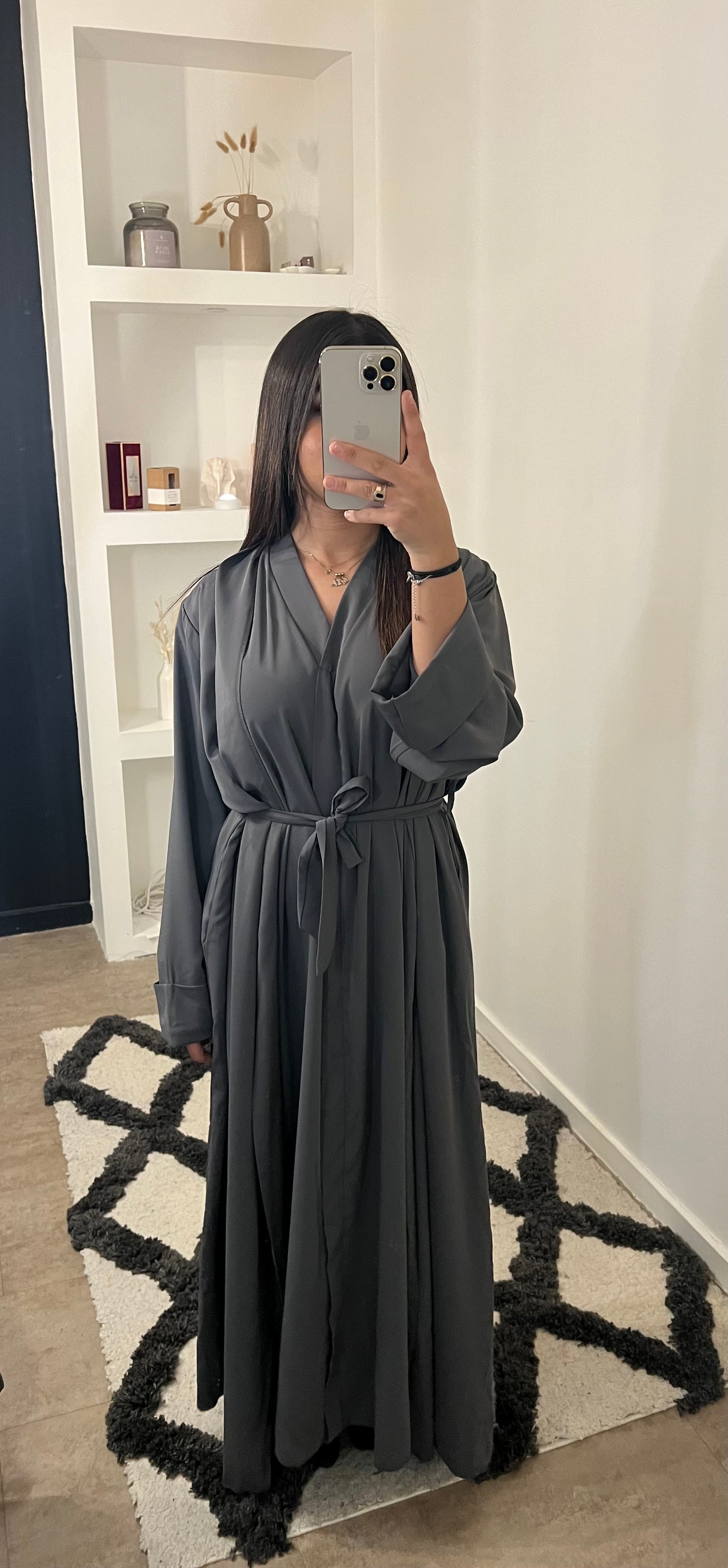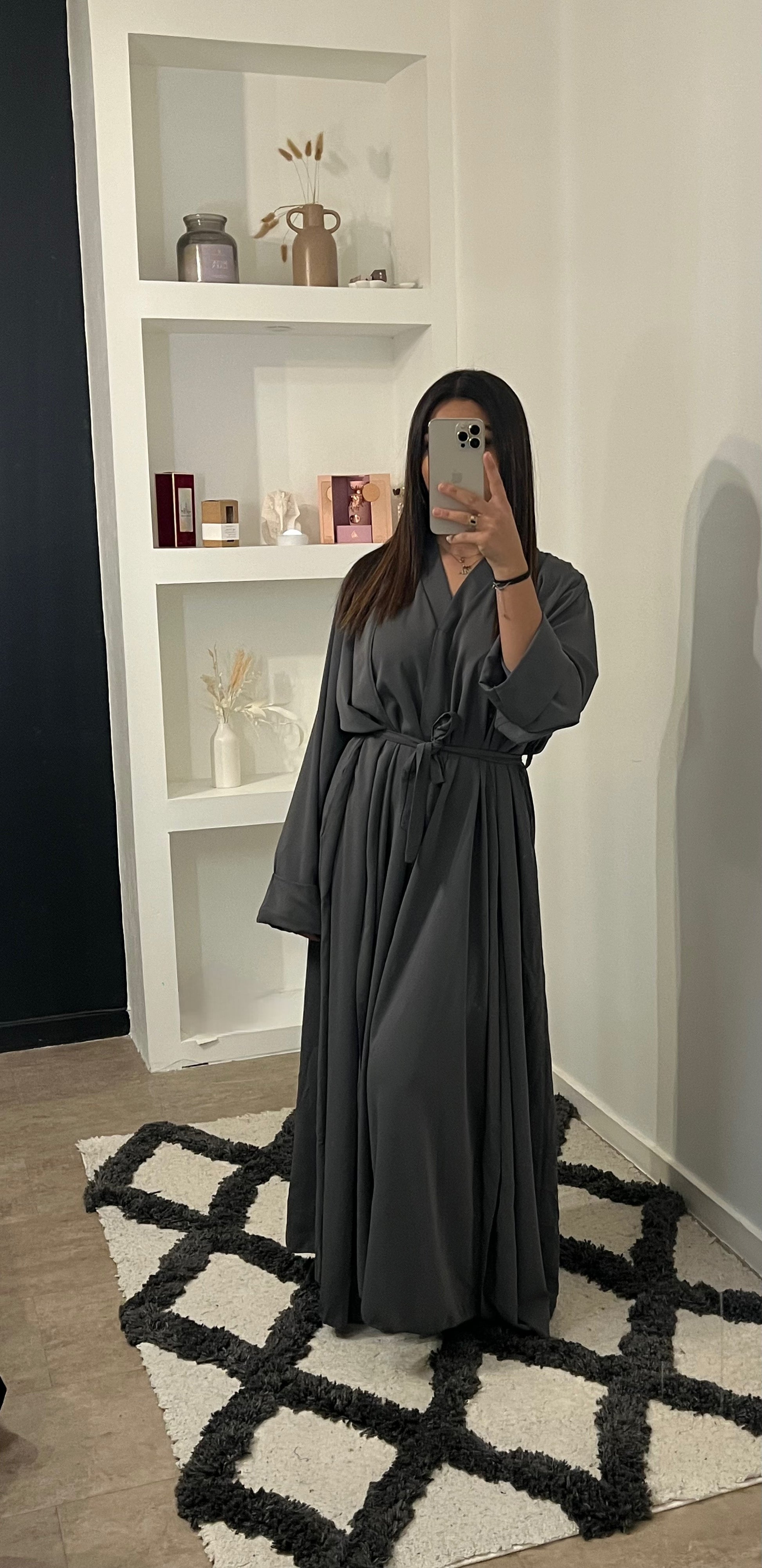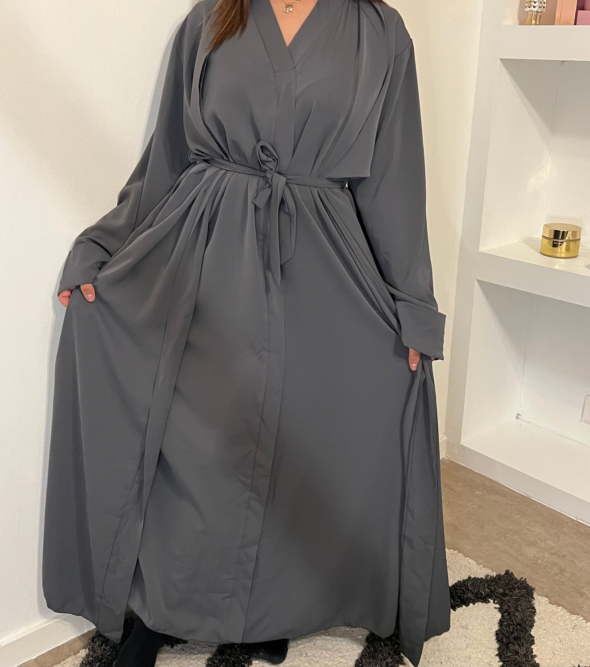 Ensemble long kimono et robe sans manches gris - BAHIA